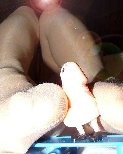 パンスト越しの太ももに顔をスリスリしたり……